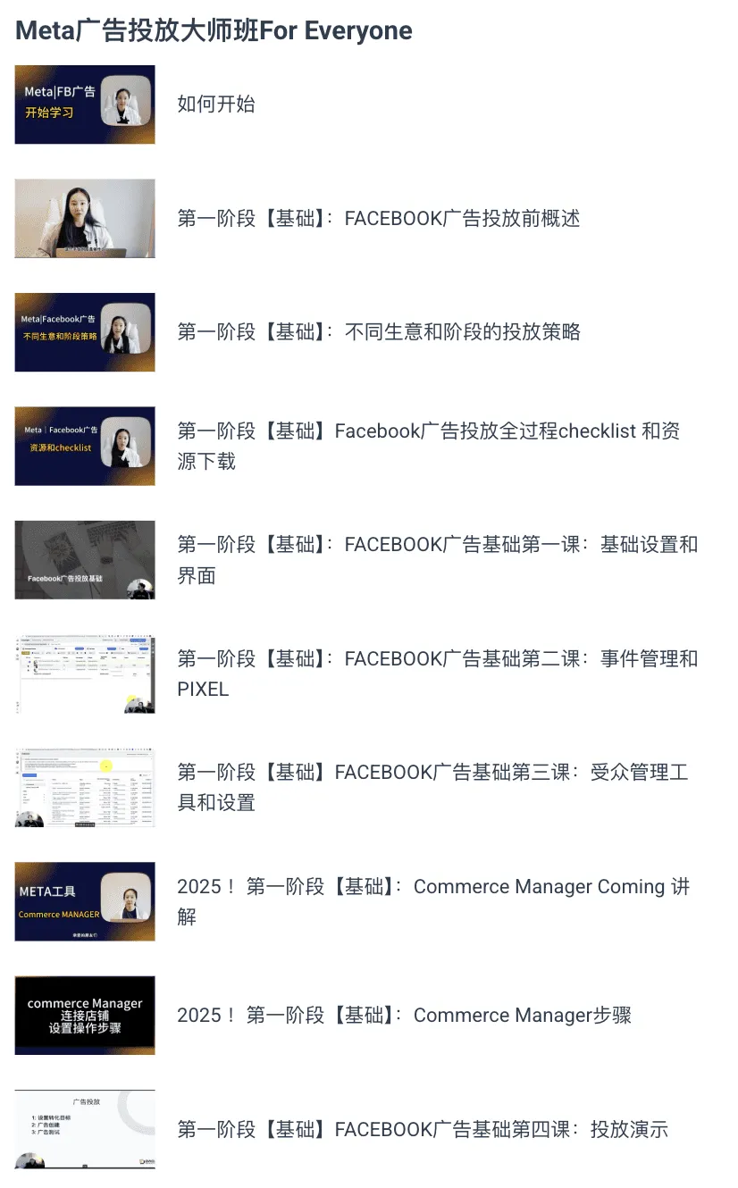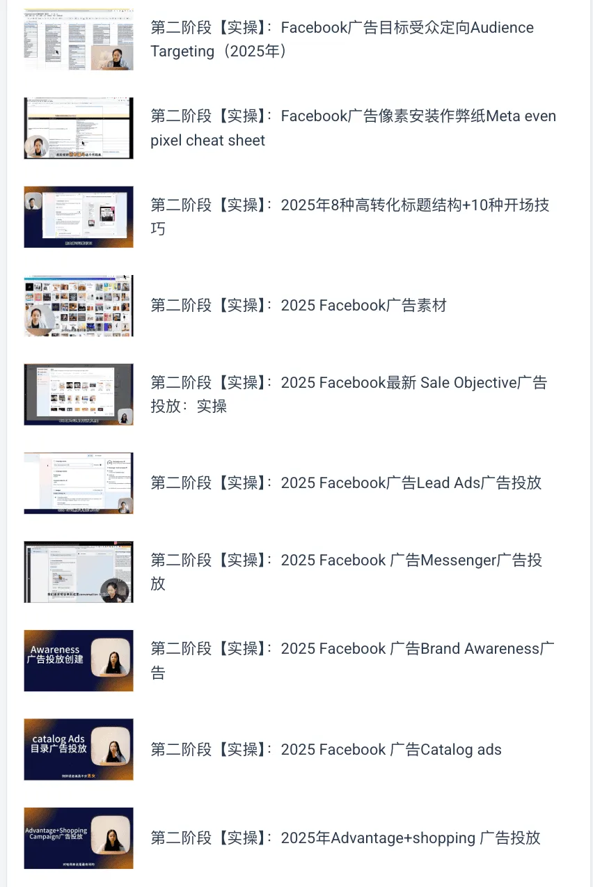 我们:基础→实操→策略 完整闭环,没有废话,全是干货 你学完不是只会按按钮,而是真正理解Facebook广告的本质和应用逻辑。